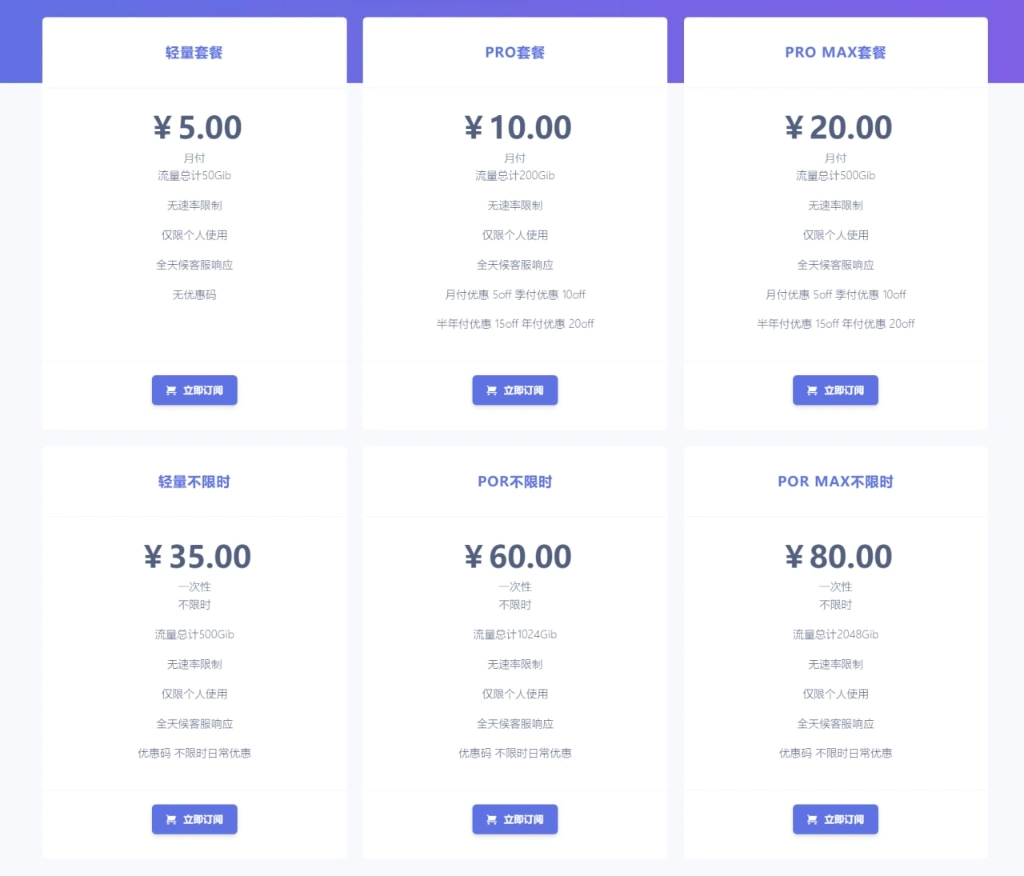 良心云机场支持月付,套餐价格不贵,流量给的可以说是巨量,同时提供不限时长按量付费流量包。