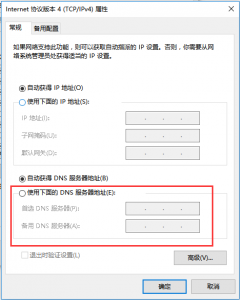 5.勾选【使用下面的DNS地址】,在输入框中输入您想使用的DNS地址即可。常用的DNS有Google DNS(首选8.8.8.8 备选8.8.4.4)或OpenDNS(首选208.67.222.222 备选208.67.220.220).