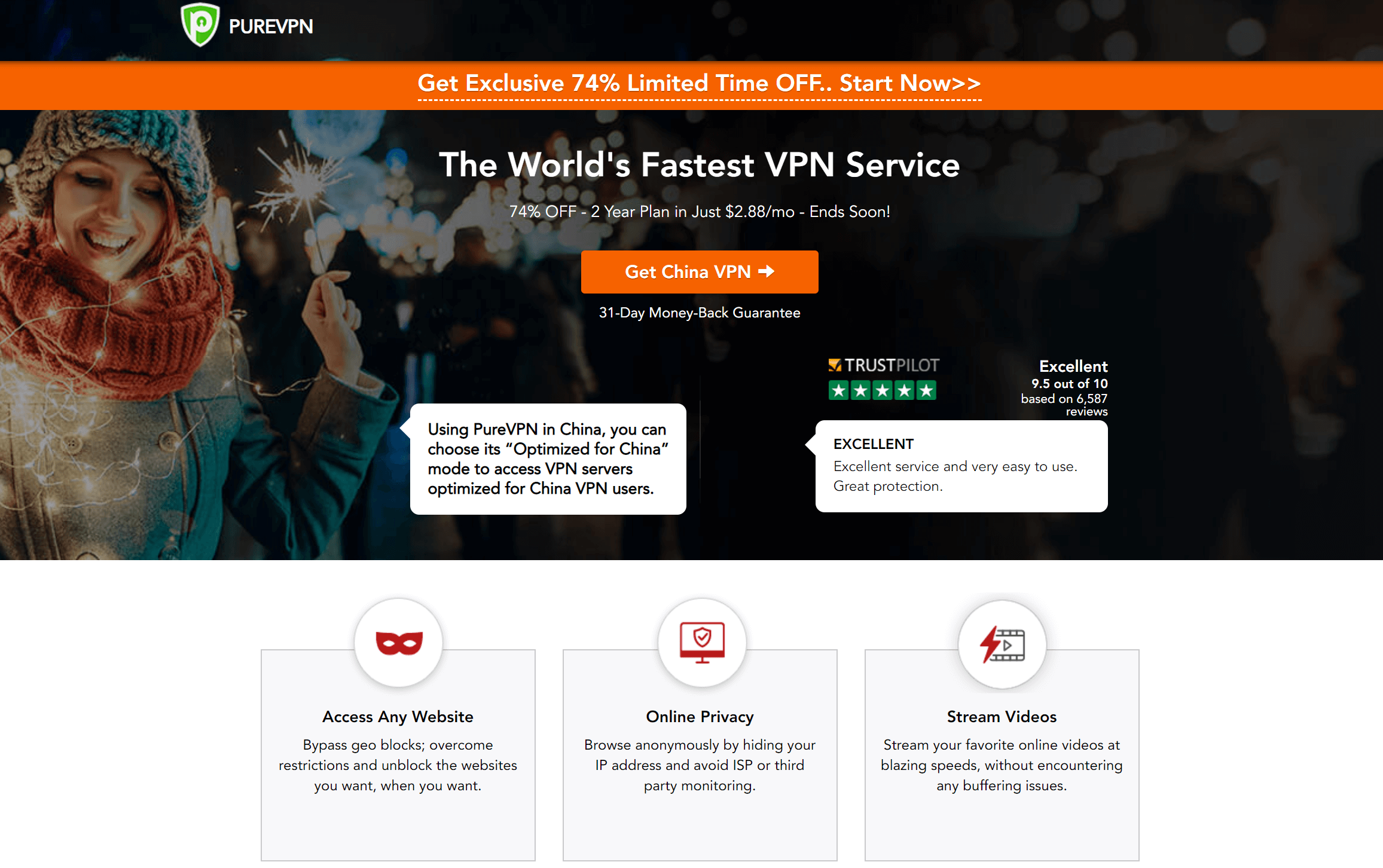 注意:因为防火长城会不断更新,致使很多VPN接二连三遭受屏蔽。下列的5个VPN,都经过我们测试(2020 年最新测试),目前并未受到影响,而且服务器多、更新快。此外,该文章会不断更新,敬请留意。