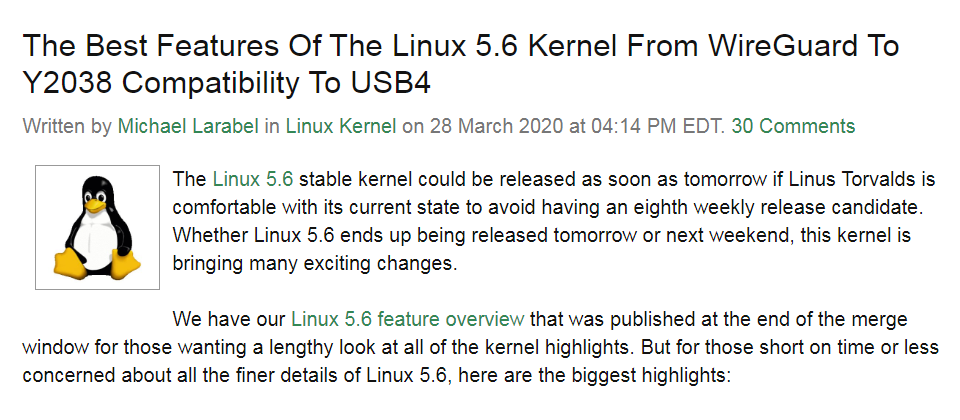 Donefeld指出,一些改版快的Linux发行版如Arch、Gentoo、Fedora、Clear Linux,很快就会升级到5.6 版核心。至于稳定发行版如Ubuntu、Debian或CentOS,Donefeld表示WireGuard已经回溯移植(backported)到Ubuntu 20.04 及Debian Buster版本,最终会到Linux LTS 版5.4版核心。