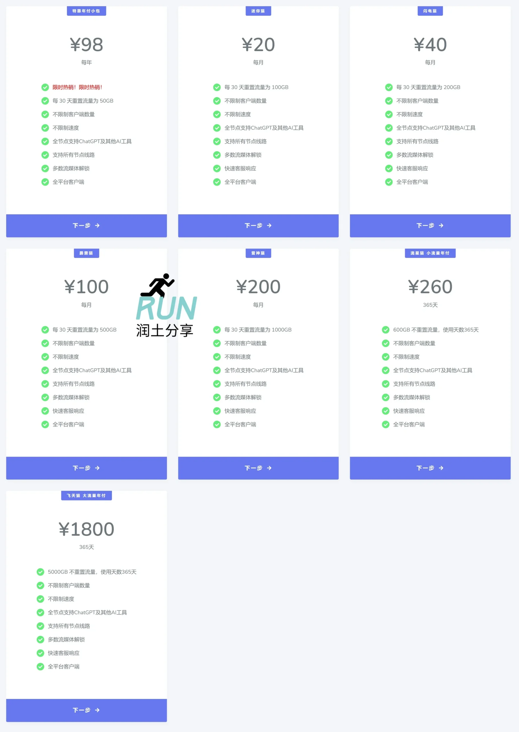 套餐支持月付,季付、年付均有不同幅度优惠力度。不提供按量付费流量包支持。